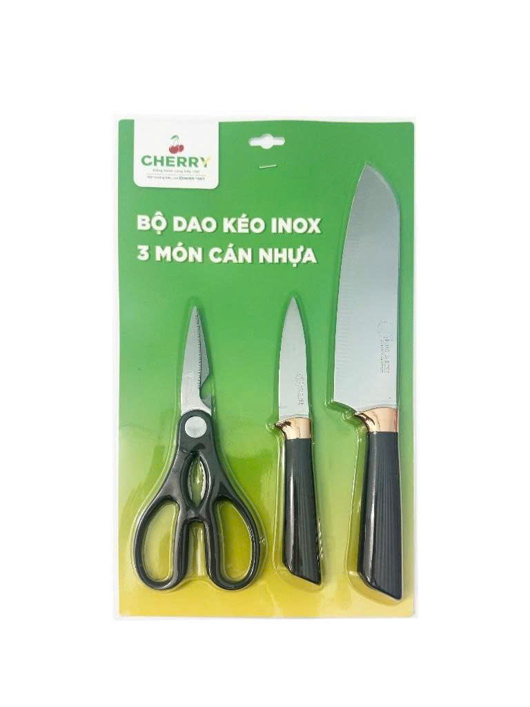 BỘ DAO KÉO INOX 3 MÓN CÁN NHỰA