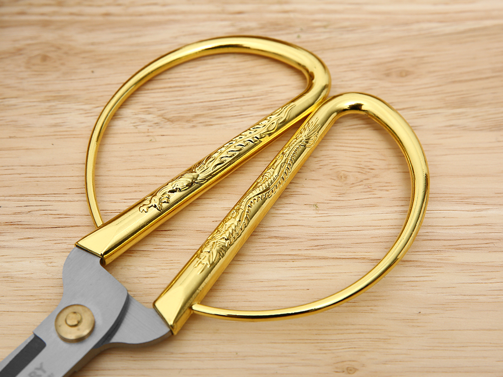 Chất liệu: Lưỡi kéo inox cao cấp, chống gỉ – cán vàng sang trọng